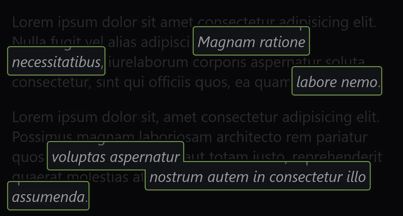 This is a solution I came up with for drawing “knockout” overlays on a page that I think is pretty clever. I used this in the past as a development tool to help visually identify localization entries on a webpage.